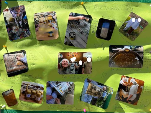 Diese Impressionen geben einen Einblick in meine Arbeit in der Imkerei, in die faszinierende Welt meiner Bienen und in die vielfältigen pädagogischen Projekte, wie meine wöchentliche Imkerei AG. Sie zeigen besondere Momente am Bienenstand, gemeinsames Lernen, kreatives Gestalten und die Begegnung mit dem Bienenvolk